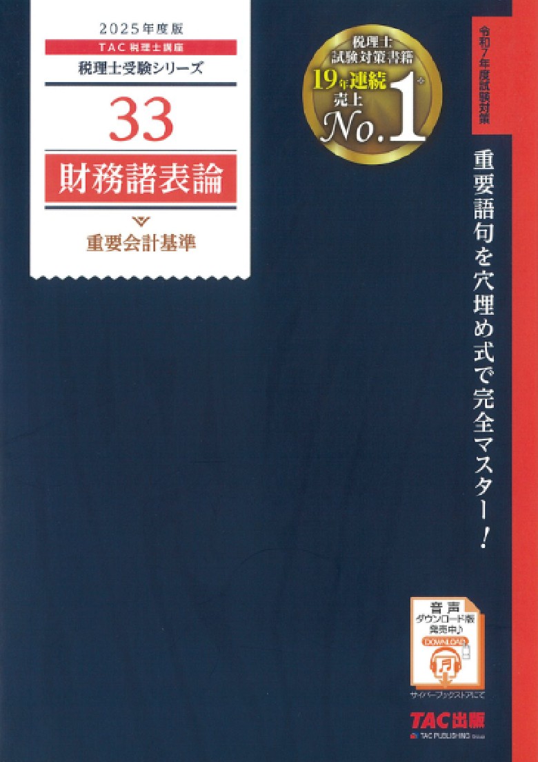 (a-21)TAC税理士講座/33/財務諸表論/重要会計基準(2025年度版)税理士受験シリーズ -