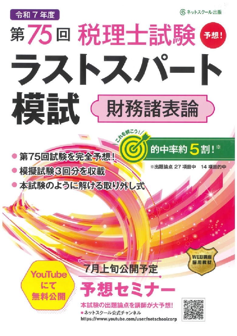 (a-25)令和7年度版/第75回税理士試験予想/ラストスパート模試/財務諸表論ネットスクール出版