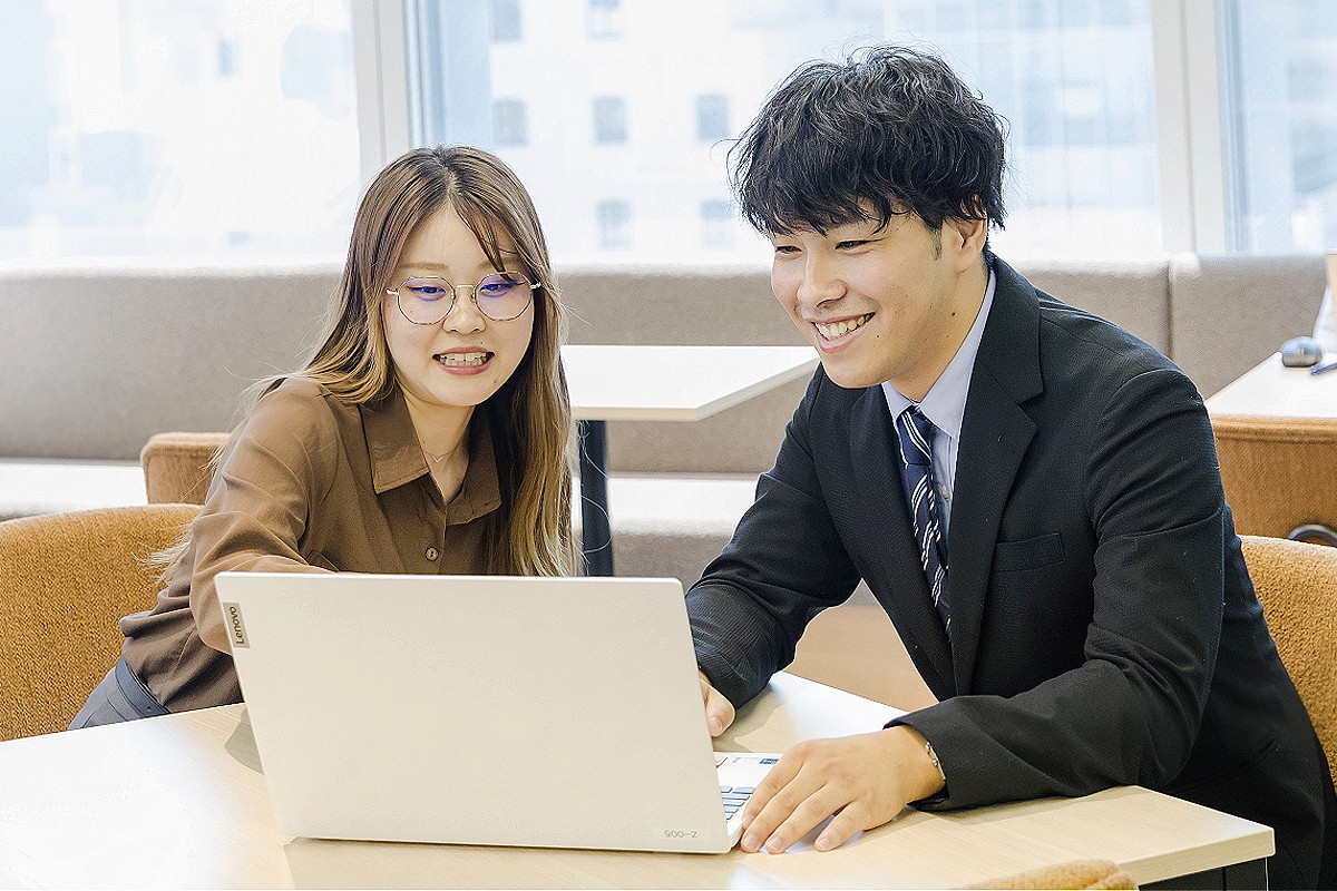 オフィスは「メリハリを利かせつつ和気あいあい」という雰囲気。みんなで「わー」っと盛り上がったかと思うと、ピシッと集中していたり(懐メロや最新曲、ラップなど多彩な音楽が流れています)。気軽に相談できる先輩ばかりで、疑問や不安が生まれても心配は無用です。安心して飛び込んできてください!