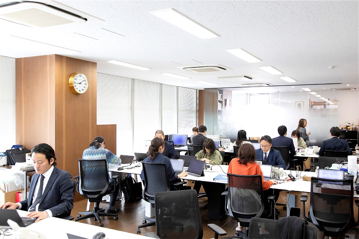 自然光が差し込む明るい空間で集中して業務に取り組めるだけでなく、ミーティングやクライアント対応もスムーズに進められます。さらに在宅勤務制度や柔軟な働き方を導入し、効率的かつ働きやすい環境づくりを推進しています。